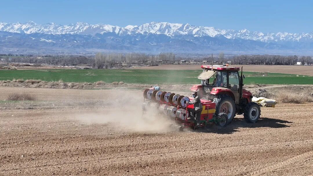 4月9日,在奇台县七户乡东塘村,田间地头机器轰鸣,种植户陈大明在技术人员的指导下,正忙着进行鹰嘴豆的播种工作。陈大明今年种了1000亩地鹰嘴豆,八月份鹰嘴豆收完继续种冬小麦,进一步提高收入。