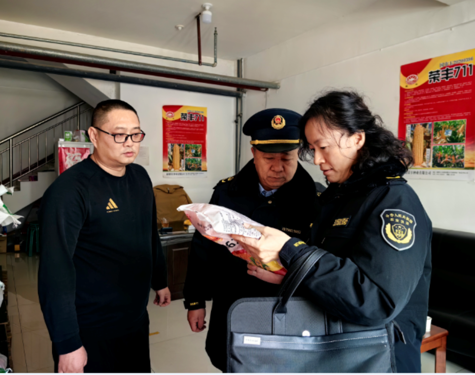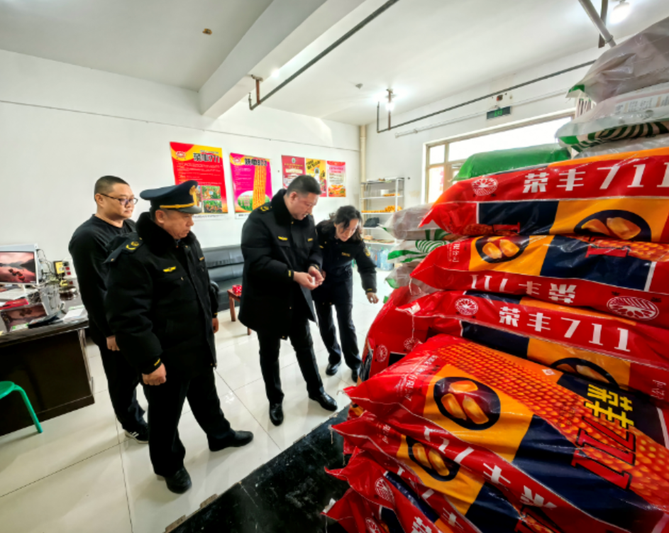 奇台县农业综合行政执法支队执法人员在大鑫丰种子店开展执法检查