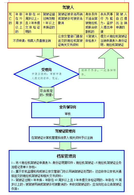 拖拉机(联合收割机)驾驶证注销业务流程图