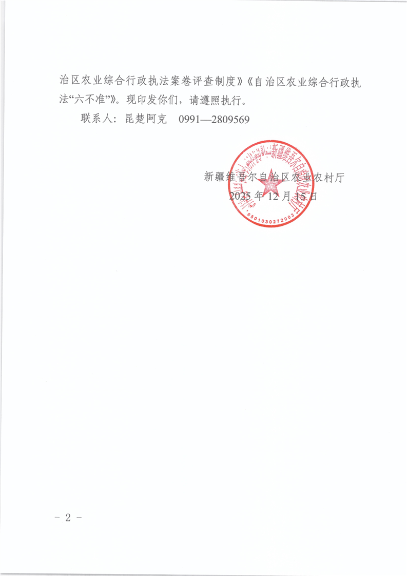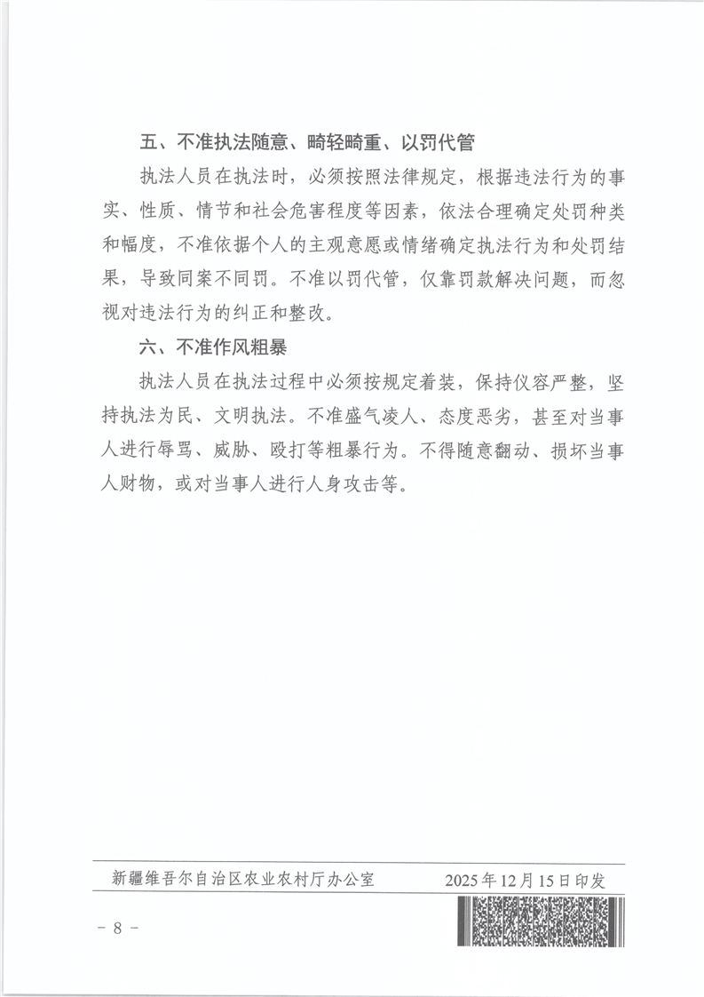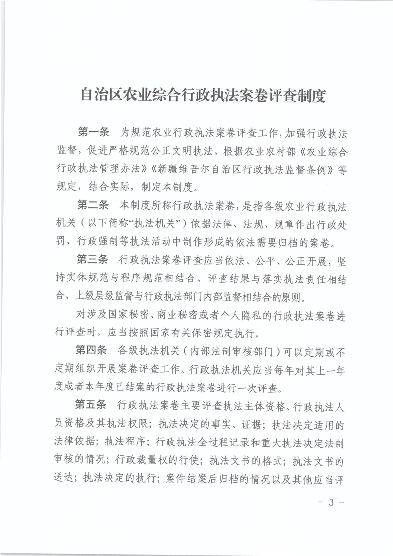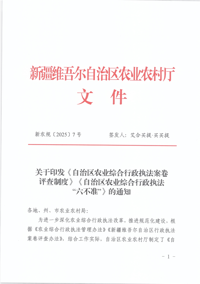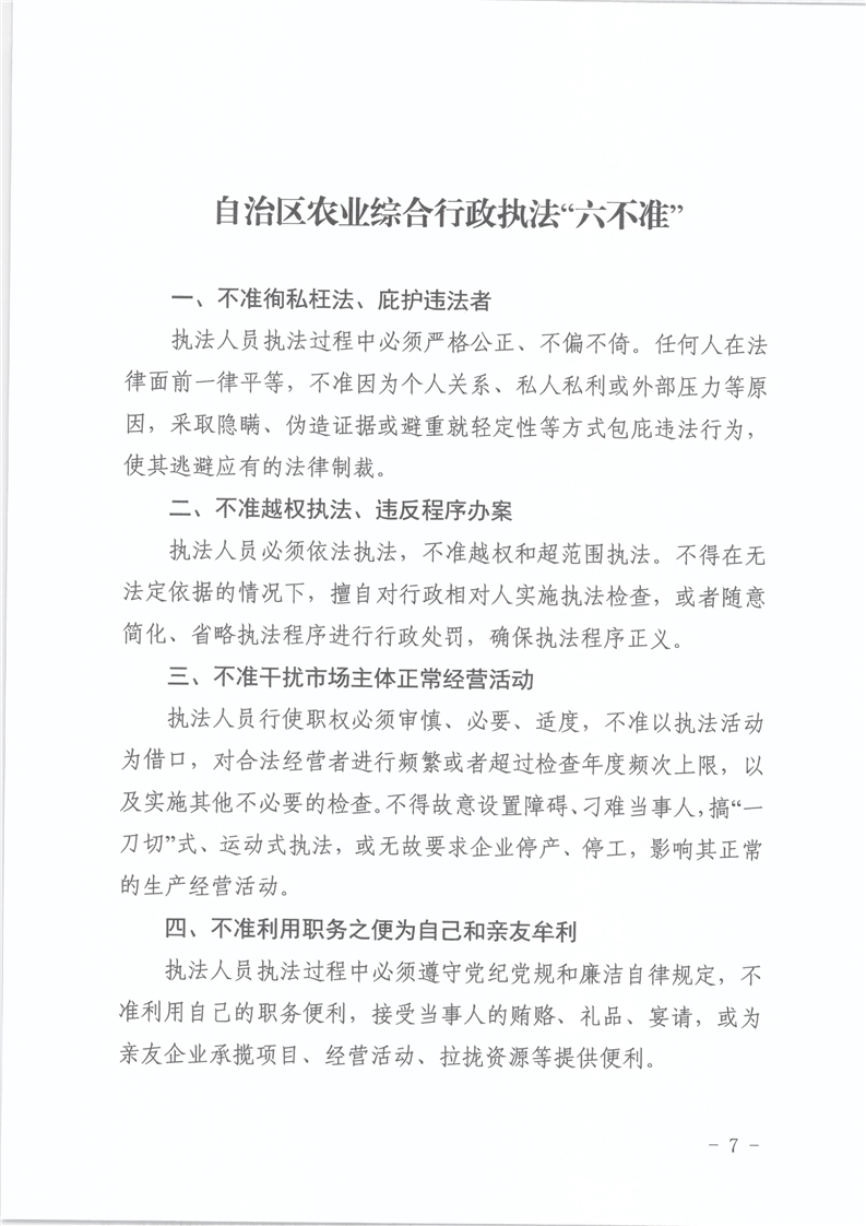 关于印发《自治区农业综合行政执法案卷评查制度》《自治区农业综合行政执法“六不准”》的通知