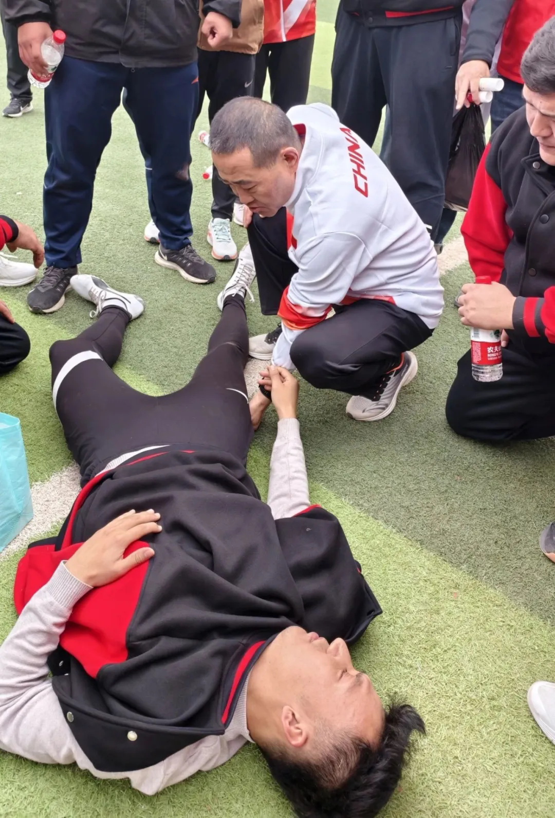比赛过程中还上演了一幕幕感人画面,在田径赛百米跑场上,吐鲁番代表队的一名运动员在百米跑中不幸拉伤,倒地不起。昌吉州中医医院推拿科的副主任医师李尽峰迅速上前,为受伤的运动员进行了初步处理,给予了必要的帮助和支持。整个过程中,李尽峰始终保持着镇定,尽全力安慰受伤的运动员,直到救护车抵达现场,确保了运动员的安全。在5公里中长跑中,一名选手不慎摔倒,我方运动员艾合买提·依地热斯不顾自己的比赛成绩先去帮扶竞赛对手,他们用行动诠释着“奉献、友爱、互助、进步”的志愿服务精神。