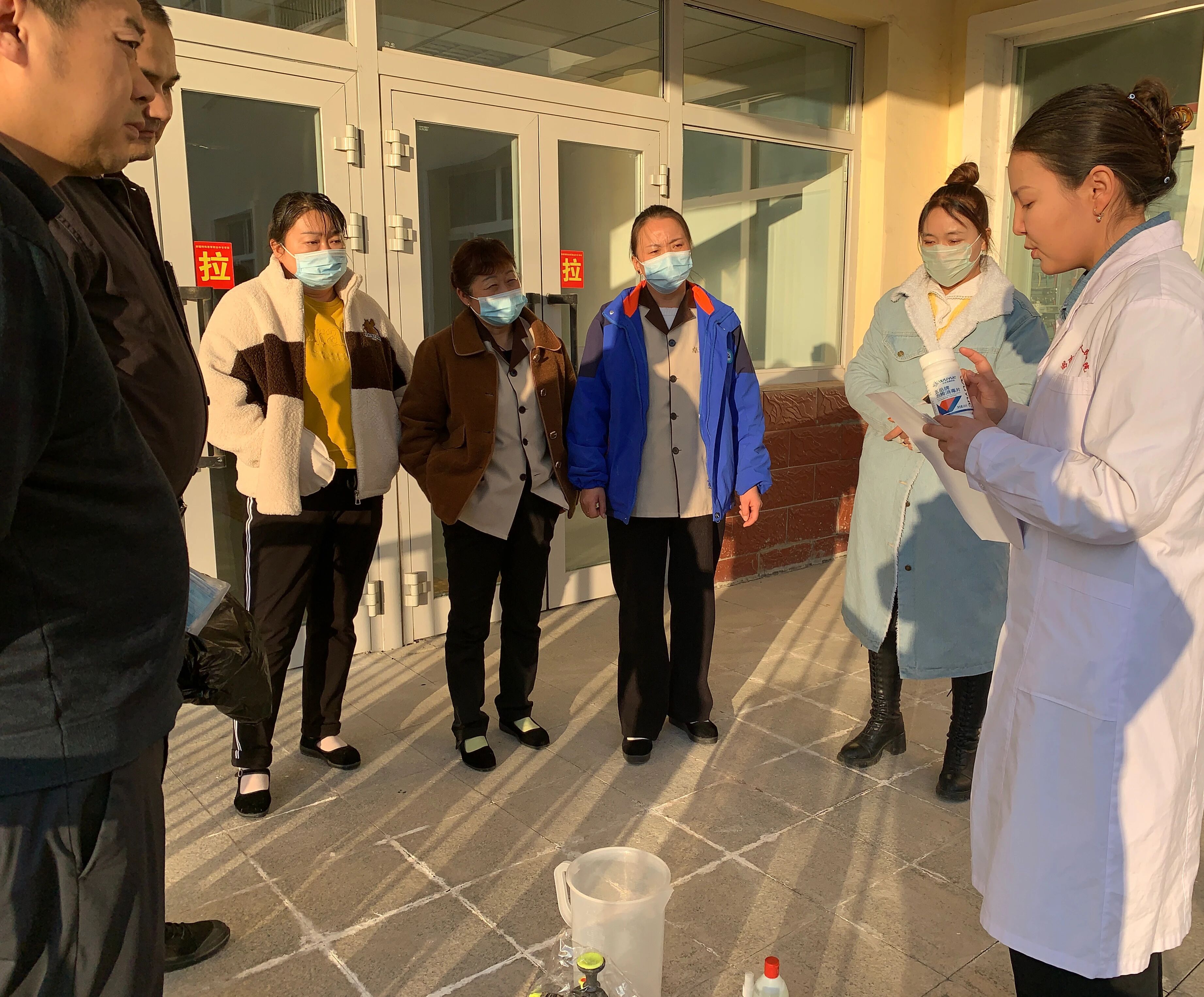 讲座结束后,昌吉州第二人民医院院感专干古丽娜为学校后勤团队开展了专项培训,内容涵盖消毒液的正确配比、不同场所的清洁频次以及个人防护用品的规范使用等方面,讲解注重实操,进一步提升校园防控能力。