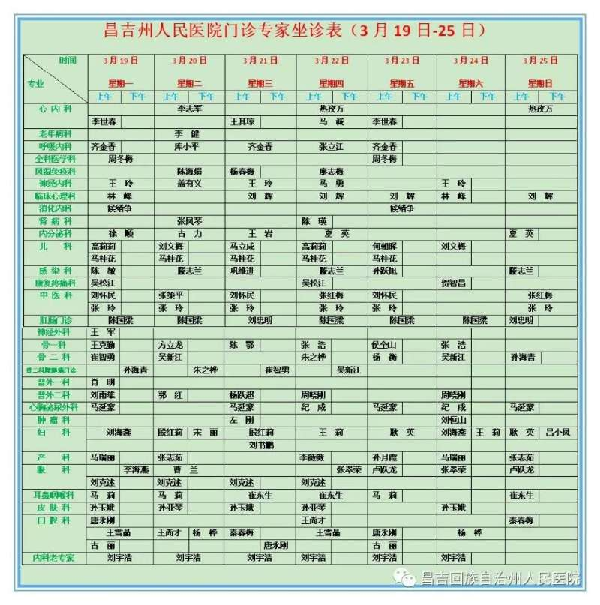 昌吉州人民医院门诊专家坐诊表(3月19日-25日)