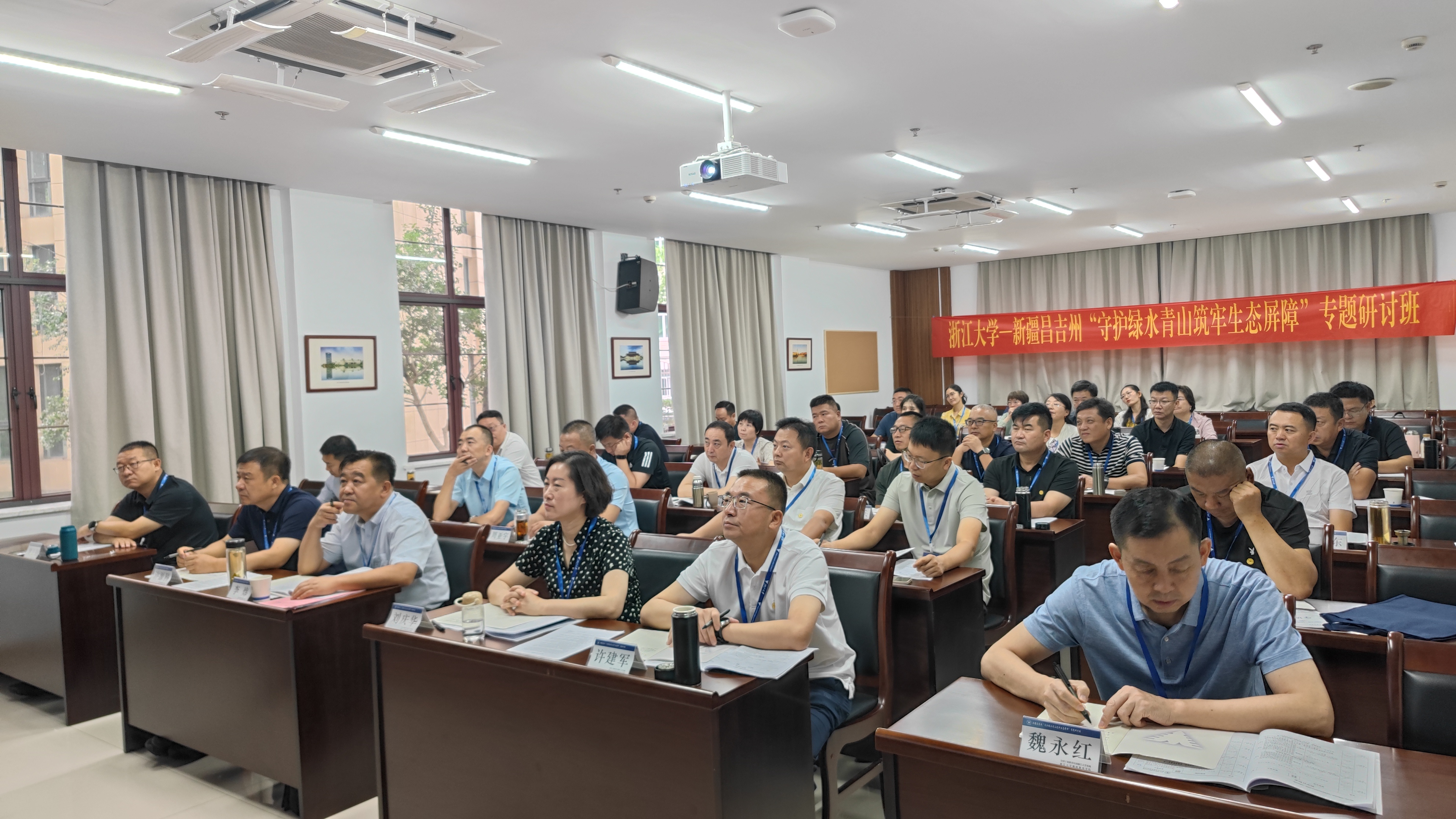 为深入贯彻落实习近平生态文明思想,贯彻落实习近平总书记关于浙江“千村示范、万村整治”工程的重要指示批示精神,夯实生态资源保护根基,书写好“典范地州”生态文明建设的新篇章,近日,昌吉州“守护绿水青山 筑牢生态屏障”专题研讨班在浙江大学开班。州林草和自然资源部门分管领导、业务骨干,各县市党委、人民政府分管领导,县市(园区)林草和自然资源部门主要领导,州国土资源规划研究院、新疆林科院现代林业研究所业务骨干等共计40人参加培训。
