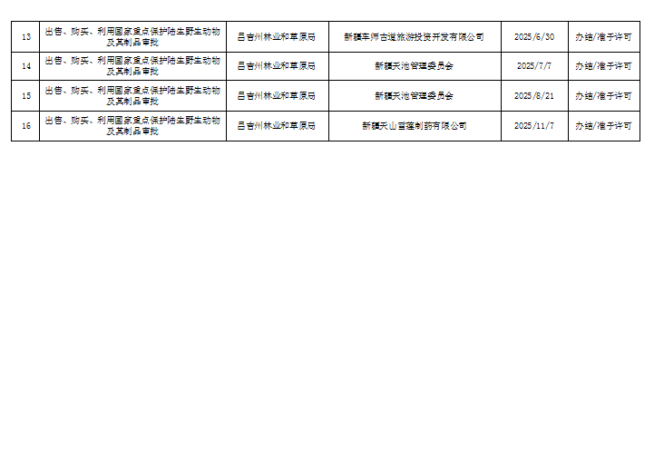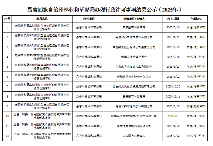 【行政许可】昌吉回族自治州林业和草原局办理行政许可事项结果公示