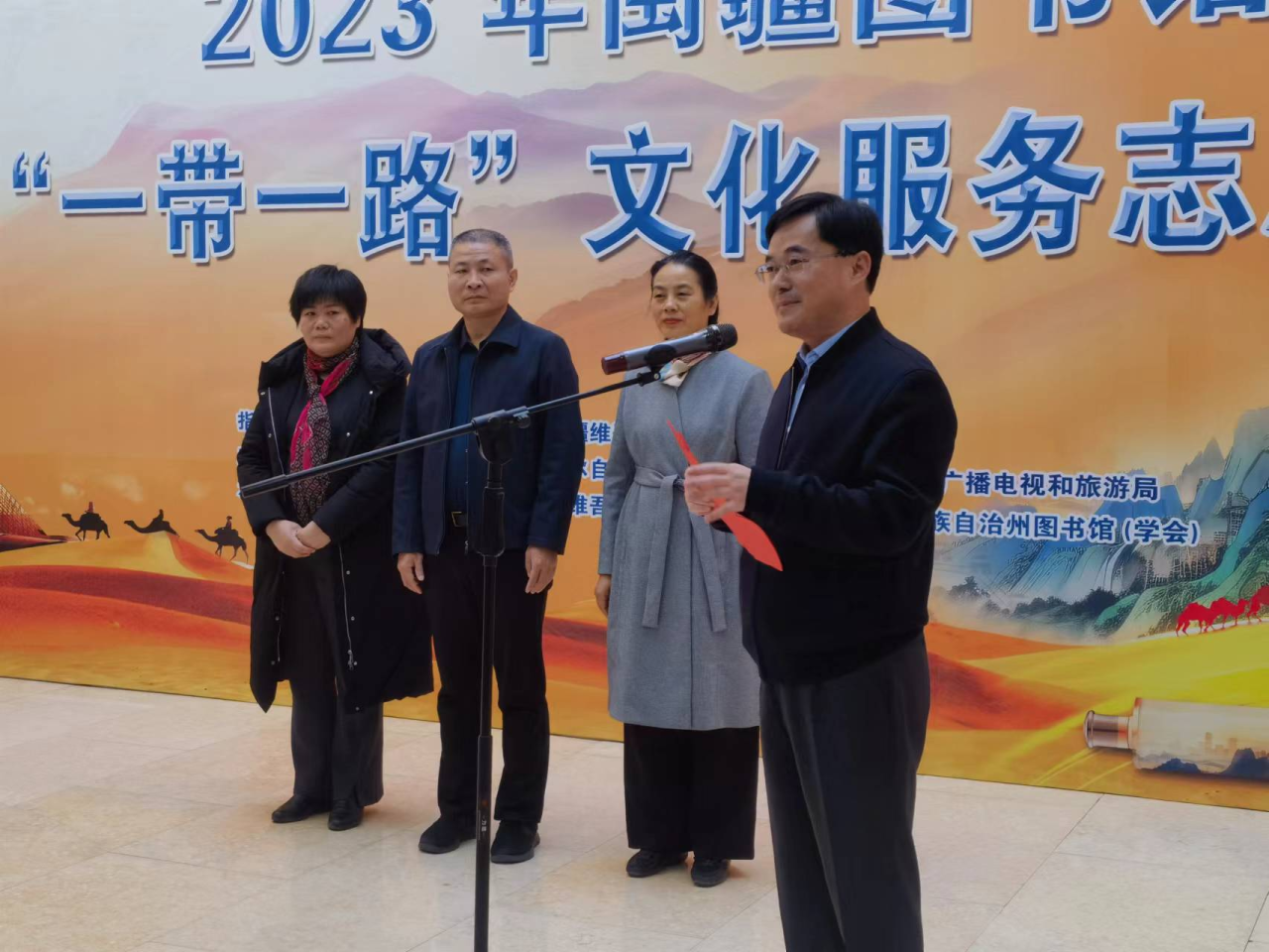 曹其虎在致辞中表示,自援疆以来,福建省通过资金支持、图书捐赠、资源共享等方式,帮助支持昌吉州城市新型公共文化空间、特色图书馆分馆建设,增加昌吉州公共图书馆各类馆藏资源10万余册,为昌吉州文化事业发展给予了大力支持。希望通过此次活动,进一步促进闽疆两地的交流合作,彰显海上丝绸之路和陆上丝绸之路的文明互鉴。