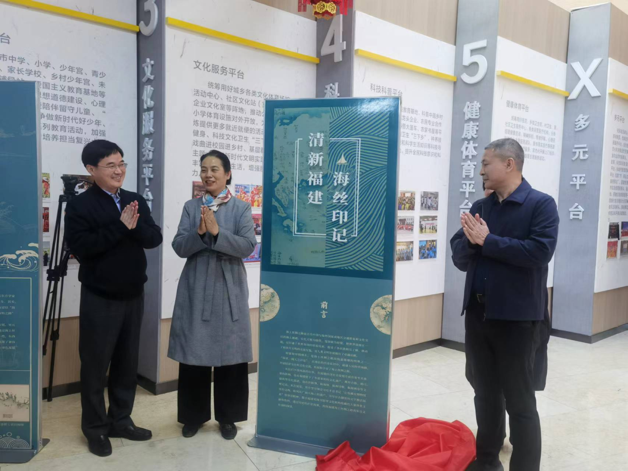 与会领导共同为《清新福建·海丝印记》专题展览揭幕。2023年是“一带一路”倡议提出十周年,福建省图书馆特别策划的《清新福建·海丝印记》聚焦福建在海上丝绸之路的古今变迁,展现了福建作为21世纪海上丝绸之路核心区,在共建“一带一路”高质量发展中发挥的积极作用。
