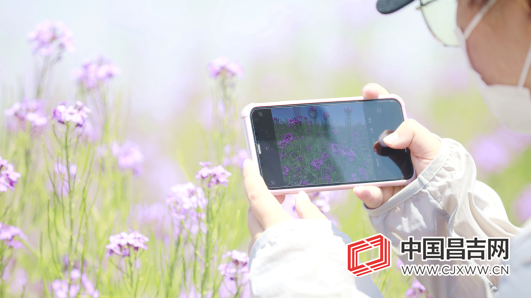 盛开的兰香芥吸引游客前来游玩拍照。