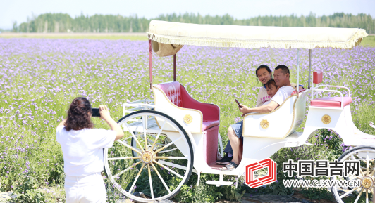 目前,天山花海景区文化长廊尽头的300亩兰香芥正在盛开,吸引了不少游客前来游玩拍照。据了解,今年7月至10月,天山花海景区的百日草会相继开放,将形成多彩花海的美景。