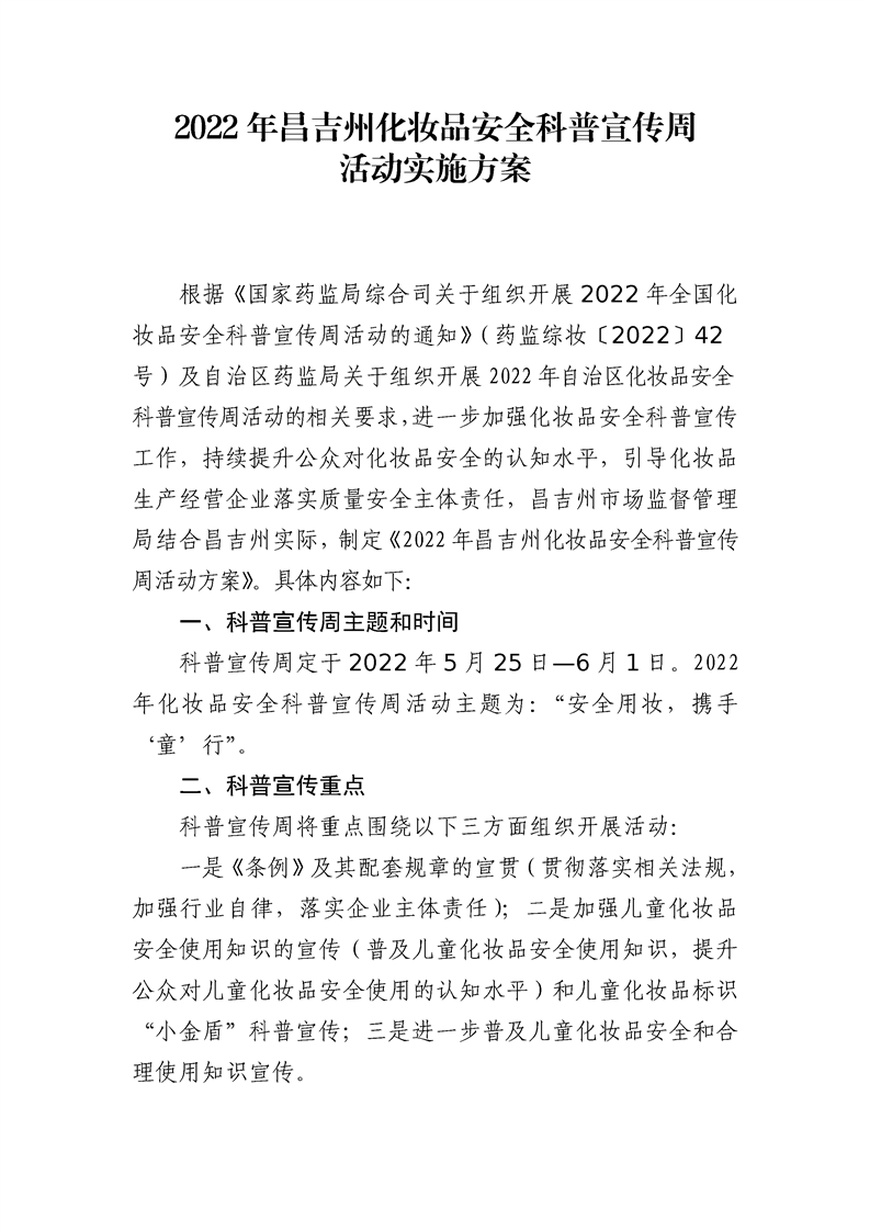 【用妆宣传】2022年昌吉州化妆品安全科普宣传周活动实施方案