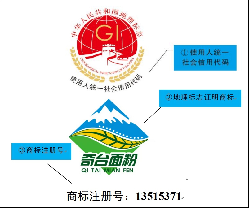 2.作为集体商标、证明商标注册的地理标志使用地理标志专用标志的,应同时使用地理标志专用标志和该集体商标或证明商标,并加注商标注册号。