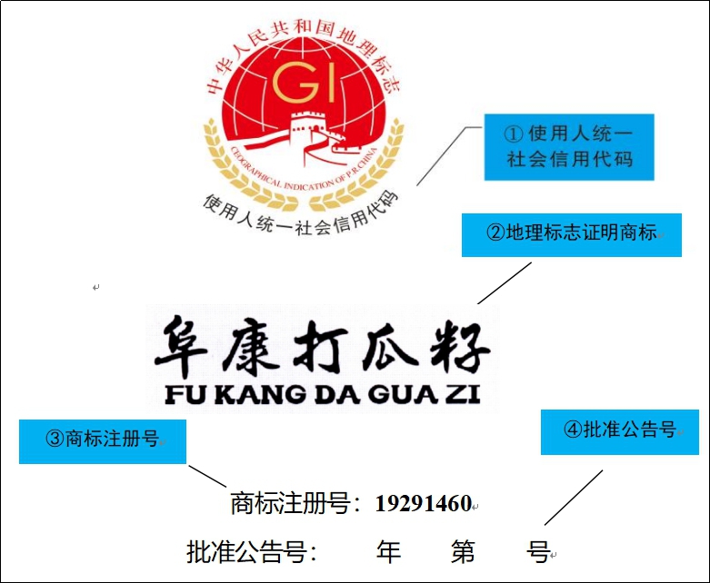 1.地理标志保护产品使用地理标志专用标志的,应同时使用地理标志专用标志和地理标志名称,并在产品标签或包装物上标注所执行的地理标志标准代号或批准公告号。