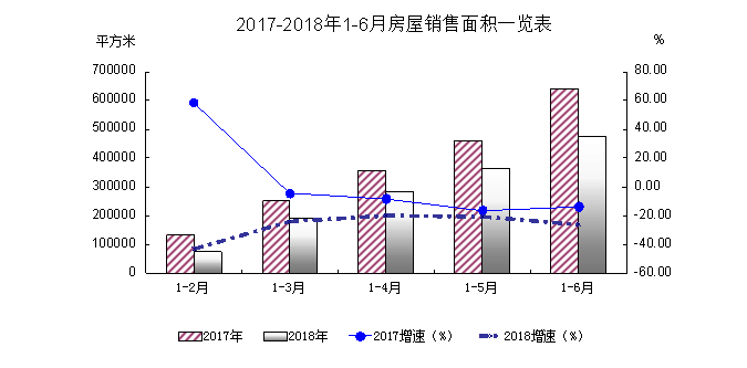 1-6月,全州商品房销售面积47.44万平方米,同比下降25.8%,降幅较1-3月扩大1.8个百分点;销售额21.05亿元,同比下降21.6%,降幅较1-3月扩大3.7个百分点;空置面积112.89万平方米(已竣工现房,不含期房),同比增长35.4%,增幅较1-3月回落5.3个百分点,面积增加2.15万平方米。