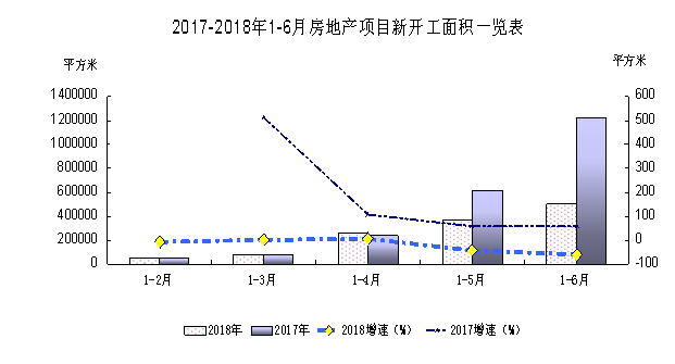 1-6月,全州房地产开发企业房屋施工面积805.59万平方米(包括历年结转至本年未竣工施工面积),同比下降5.7%,降幅比1-3月扩大8.9个百分点,其中,住宅施工面积486.54万平方米,同比下降12.2%,非住宅施工面积319.05万平方米,同比增长6.3%。房屋新开工面积50.18万平方米,同比下降59%,降幅比1-3月扩大61.6个百分点,其中,住宅新开工面积28.88万平方米,同比下降60.9%,非住宅新开工面积21.3万平方米,同比下降56.1%。