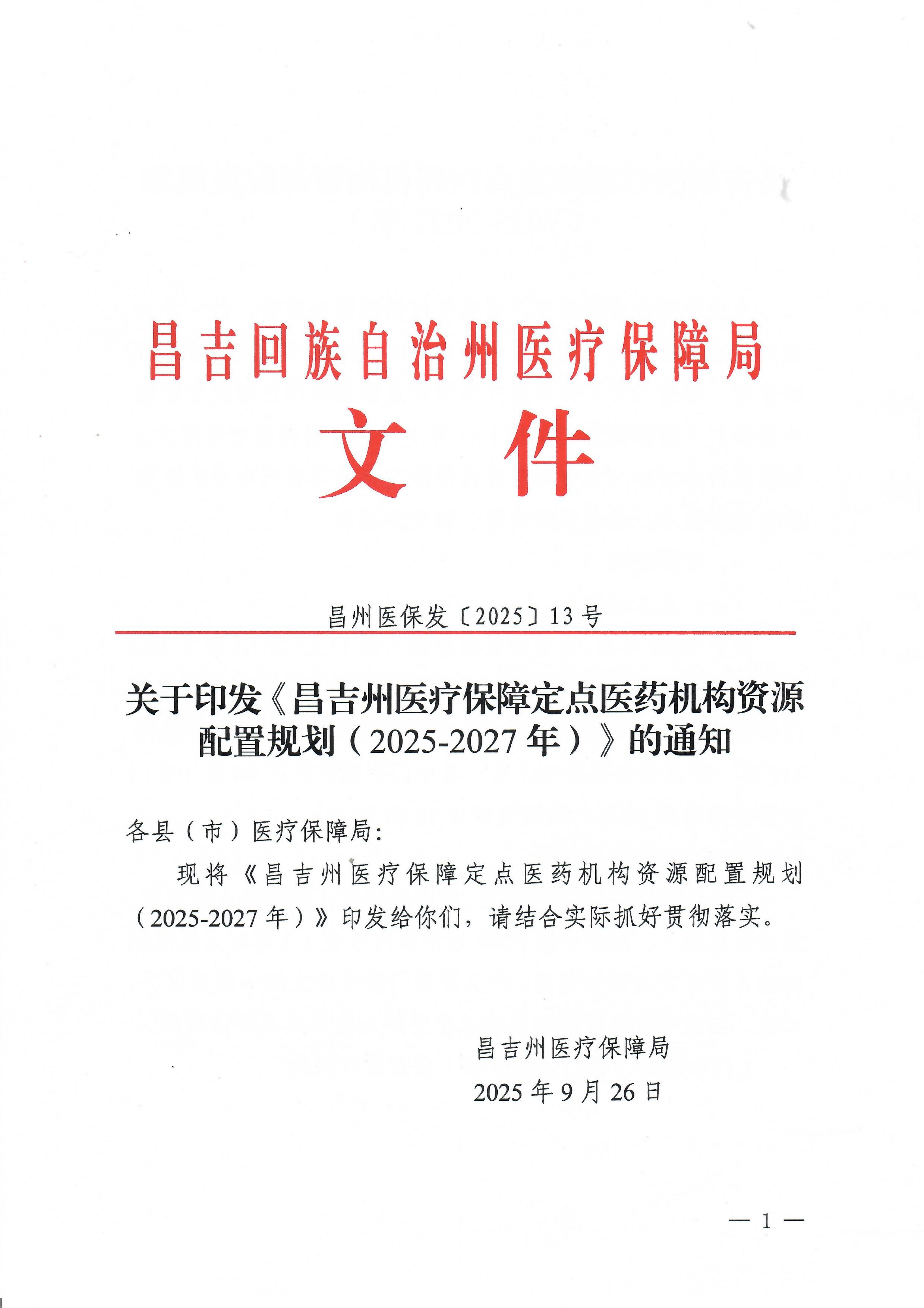 关于印发《昌吉州医疗保障定点医药机构资源配置规划(2025-2027年)》的通知