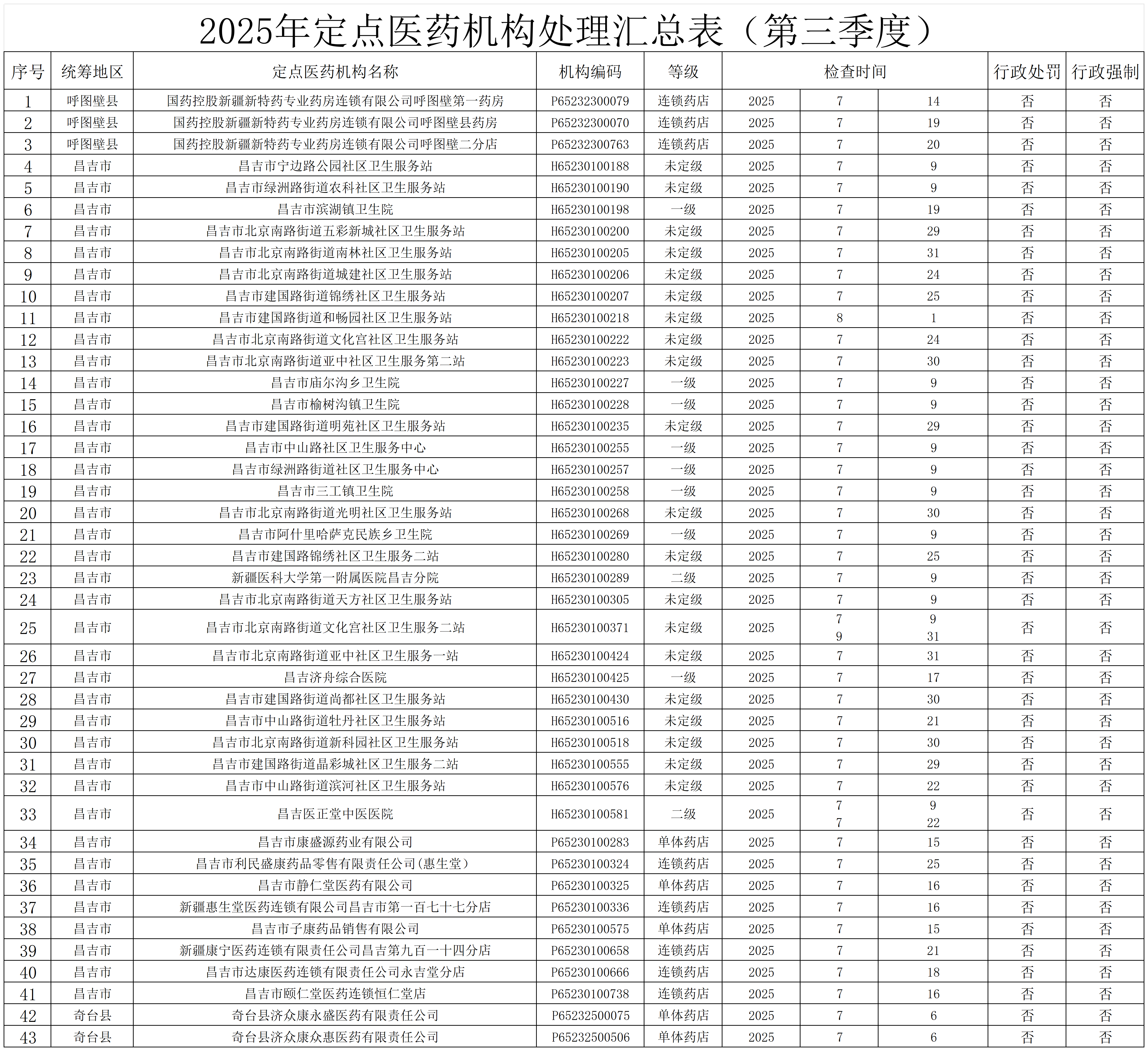 2025年定点医药机构行政处罚+行政强制情况汇总表(第三季度)