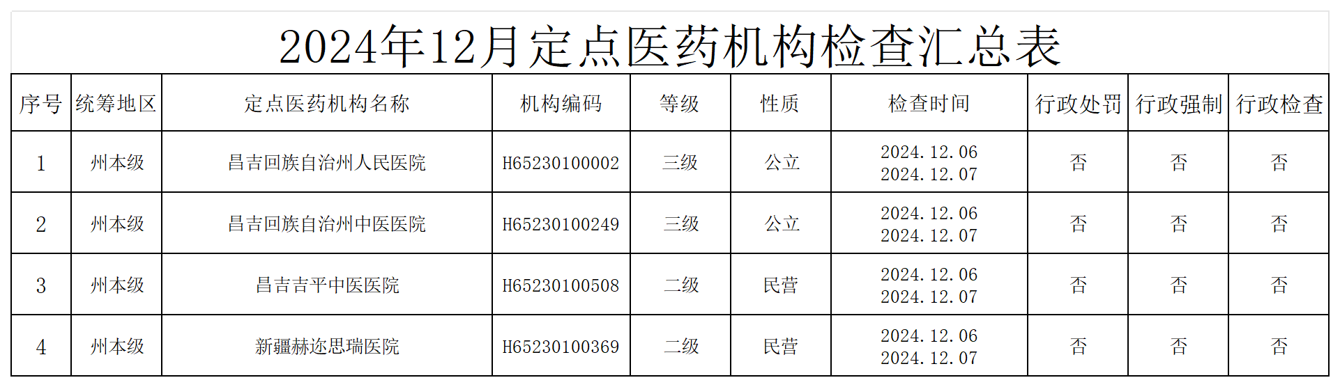 2024年12月定点医药机构检查汇总表