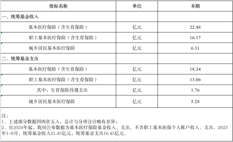 昌吉回族自治州2024年1-9月医疗保险和生育保险主要指标